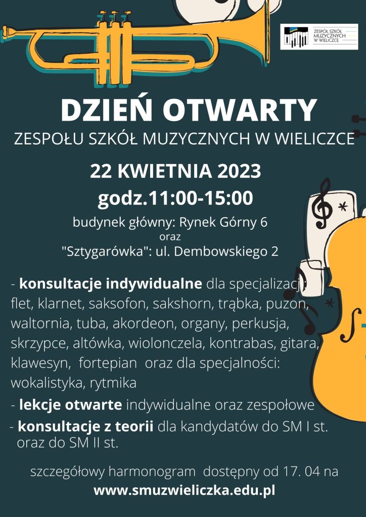 W sobotę, 22 kwietnia, serdecznie zapraszamy na Dzień Otwarty Zespołu Szkół Muzycznych w Wieliczce.