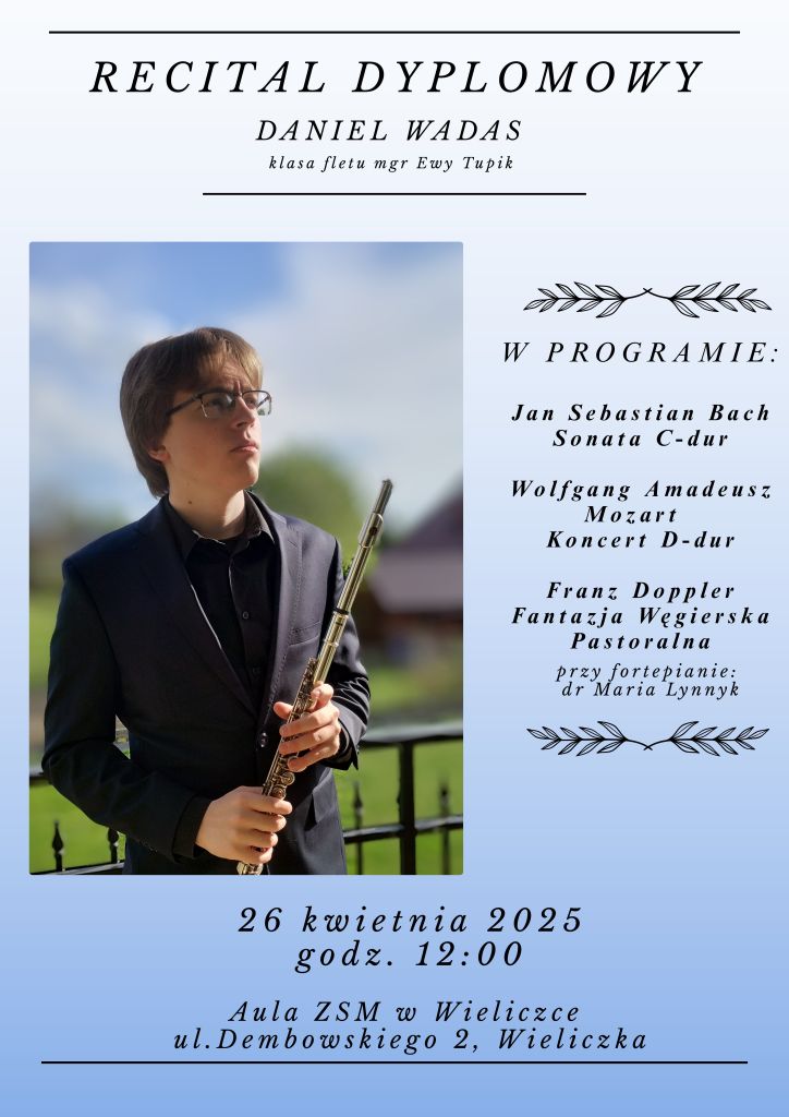 Recital Dyplomowy Daniela Wadasa z klasy fletu mgr Ewy Tupik