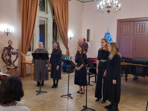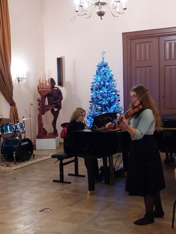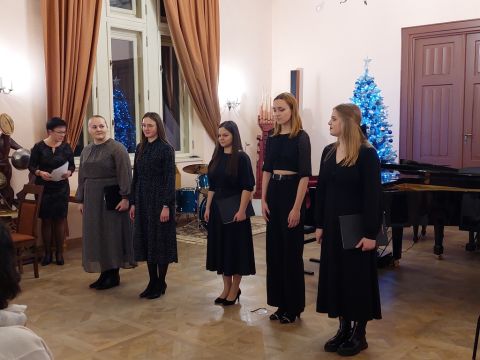 Na zakończenie uczennice Szkoły Muzycznej II stopnia, specjalności wokalistyka, tworzące zespół wokalny, który prowadzi Izabela Szota, zaśpiewały kilka kolęd, dedykując je uczniom, ich pedagogom i rodzicom oraz życząc szczęśliwego Nowego Roku.