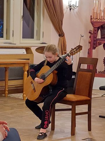 Pierwszoklasiści zaprezentowali się znakomicie. Grali solo i w duetach, akompaniując sobie wzajemnie a za swoje występy zostali nagrodzeni przez publiczność gromkimi brawami.