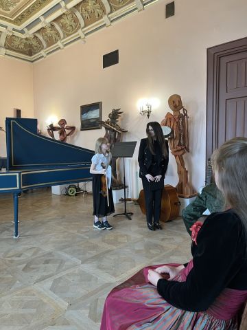 Mila Waluś oraz Natalia Wacławik, klasa skrzypiec p. Marka Polańskiego, akompaniament p. Marta Polańska,