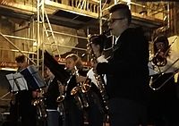 Po raz kolejny w tym niezwykłym wydarzeniu mogli wziąć udział uczniowie naszej szkoły (z klasy trąbki Pawła Gajewskiego, puzonu Arkadiusza Bały i saksofonu Ignacego Stojka), którzy pod kierunkiem Pawła Gajewskiego i Ignacego Stojka – współorganizatora, wykonawcy i koordynatora koncertu – w doborowym, bandowym składzie (wzbogaconym o udział pedagogów – Artura Ciborowskiego i Jacka Bylicy) porwali publiczność dźwiękami kilku standardów, wśród których nie zabrakło Gimmie some lovin, Louie Louie, czy Mercy, Mercy. Nasza młodzież brawurowo rozpoczęła koncert, nadając mu oczekiwany napęd, a Jan Budziaszek wyraził spokój o dalsze losy festiwalu, skoro mamy takich zdolnych, zapalonych muzyków... Szczególne słowa uznania należą się Kamilowi Ulatowskiemu – młodemu trębaczowi, który wraz z Ignacym Stojkiem stylowo „bawił się” standardem Just a closer walk with Thee. Wydaje się, że ta muzyczna ścieżka, a może i droga jest tą, którą może On śmiało podążać…