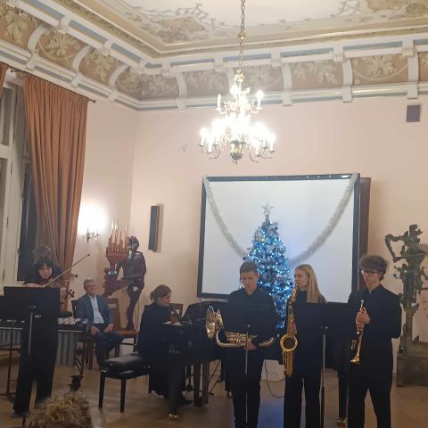Podczas koncertu nie zabrakło również soczystych brzmień kwartetu instrumentów dętych blaszanych, (Karol Dyjak, Michał Michalik, Konstanty Czarnecki - z klasy trąbki mgra Pawła Gajewskiego;  Antoni Sawis z klasy puzonu mgra Arkadiusza Bały) oraz kwintetu instrumentów dętych blaszanych (Krzysztof Sarga, Jan Gałoński, Leon Gawlik, Kamil Głąb - trąbki, Igor Piątek – puzon), którzy uraczyli publiczność wiązanką kolęd oraz świątecznych piosenek, przygotowanych pod kierunkiem mgra Pawła Gajewksiego.