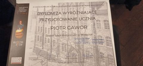 Tadeusz Tarnawski z klasy saksofonu mgra Ignacego Stojka otrzymał Wyróżnienie w XXII Ogólnopolskim Konkursie Młodych Solistów w Jaworznie, odbywającym się pod patronatem CEA. Na tym jednak nie koniec sukcesów Tadzia... Zaledwie kilka dni po konkursie w Jaworznie, Tadzio został uhonorowany Wyróżnieniem w grupie I na Międzynarodowym Festiwalu Saksofonowym - Przeworsk, również odbywającym się pod patronatem CEA (3 grudnia 2024).