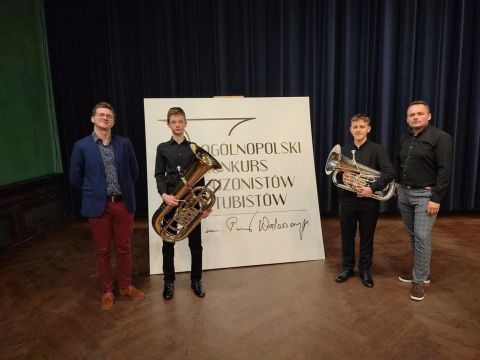 Serdeczne gratulacje dla Kamila Peszko i Piotra Komosia oraz Pedagogów - mgra Piotra Gawora i mgra Jana Olesza, którzy w ostatnich dniach zawitali do Bytomia na IV Ogólnopolski Konkurs Puzonistów i Tubistów im. Pawła Waloszczyka (28-30 listopada 2024)!