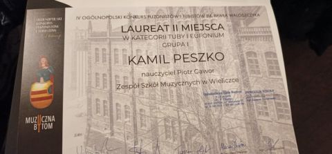 W konkursie współorganizowanym przez Ogólnokształcąca Szkoła Muzyczna I i II st. im. Fryderyka Chopina w Bytomiu oraz Centrum Edukacji Artystycznej Kamil Peszko zdobył ll miejsce, Piotr Komoś został finalistą konkursu, mgr Piotr Gawor został wyróżniony za wspaniałe przygotowanie uczniów, a mgr Jan Olesz został wyróżniony jako pianista-akompaniator.